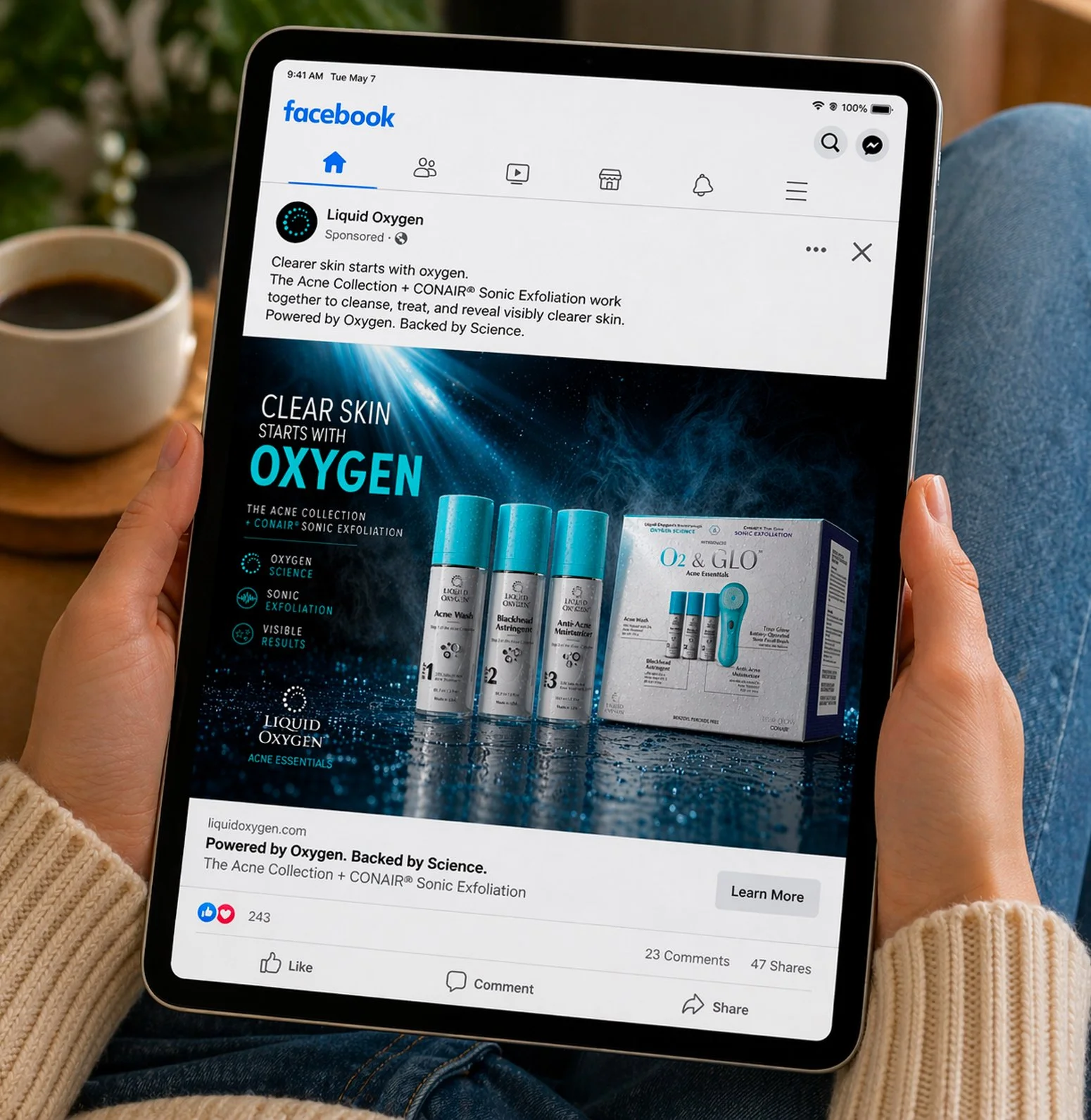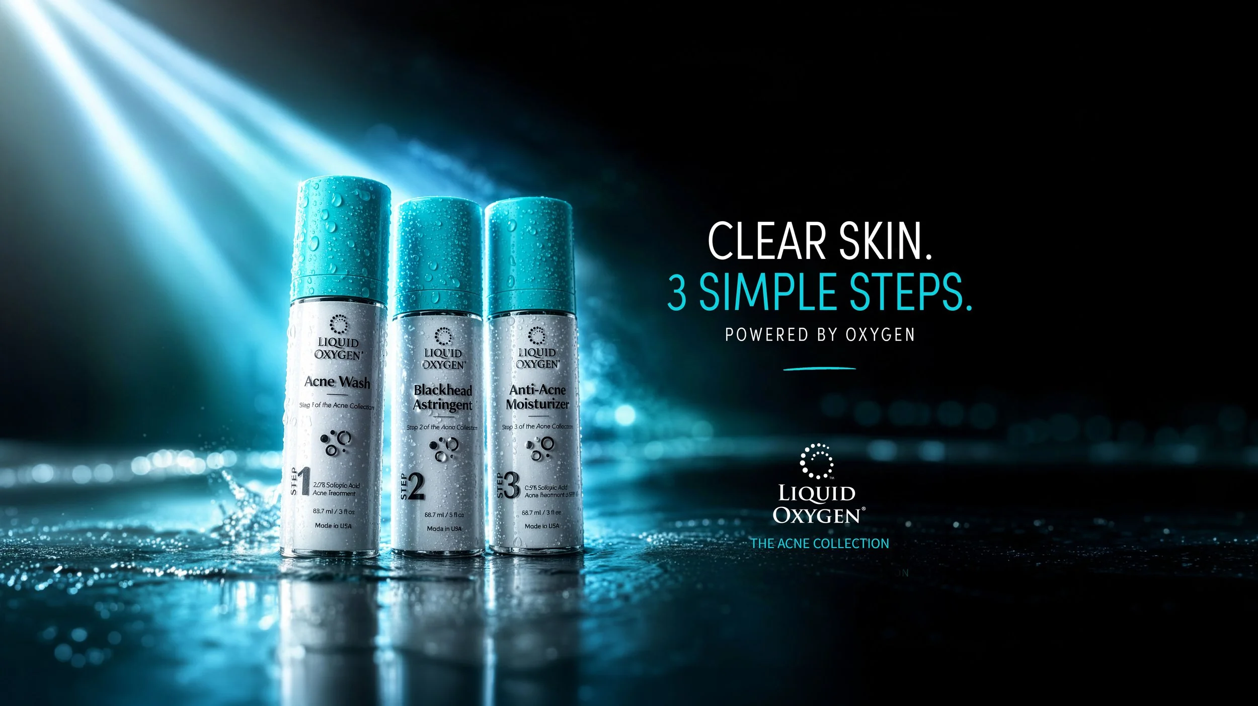 Liquid Oxygen needed a complete visual overhaul of its 3-step acne system to elevate its clinical credibility and retail presence. At the same time, the redesign had to support a proposed co-branded campaign with Conair, requiring the packaging system to align with both brands while standing out on shelf in a highly competitive skincare category. All creative needed to function as both a standalone rebrand and a compelling pitch to secure partnership approval.